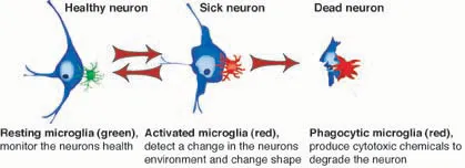 Section titled “When Good Microglia Go Bad”Cleaning up a couple of bad neurons is a good idea, but if your microglia get carried away and destroy your good neurons, you're in trouble. In short, microglia hold the capacity to cause dementia, including Alzheimer's disease.
